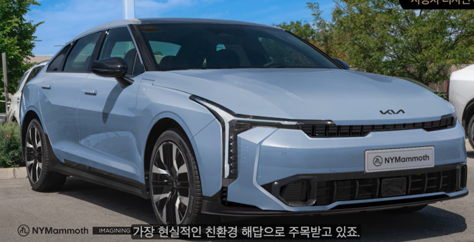 디자인 변화는 K5 풀체인지 전략의 핵심입니다. 이번에 공개된 예상 렌더링(출처: 뉴욕맘모스)은 K5가 단순히 ‘젊고 스포티한 차’에서 벗어나, ‘프리미엄 세단’으로의 도약을 준비하고 있음을 보여줍니다.